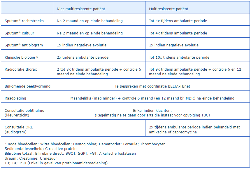 Indien de patiënt meer frequente onderzoeken of raadplegingen nodig heeft, moet met het BELTA-TBnet coördinatieteam besproken worden of deze kunnen terugbetaald worden.